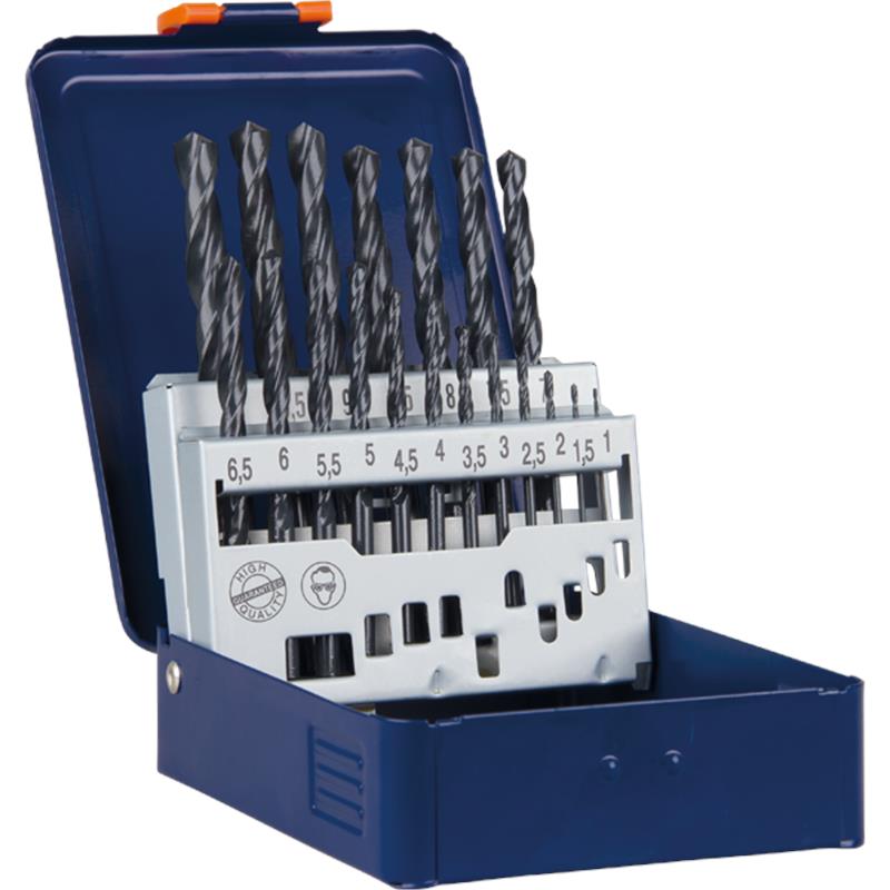 Inhoud: ø1 - 10 / 0,5mm oplopend / 1 stuks elk. HSS-R Spiraalboor DIN 338, kort, type N, rolgewalste uitvoering, stoomontlaten, tophoek 118°.