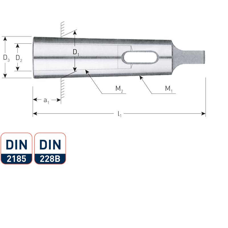 Reduceerhuls, DIN 2185, voor morsekonus, geheel gehard, uit- en inwendig precisie-geslepen.