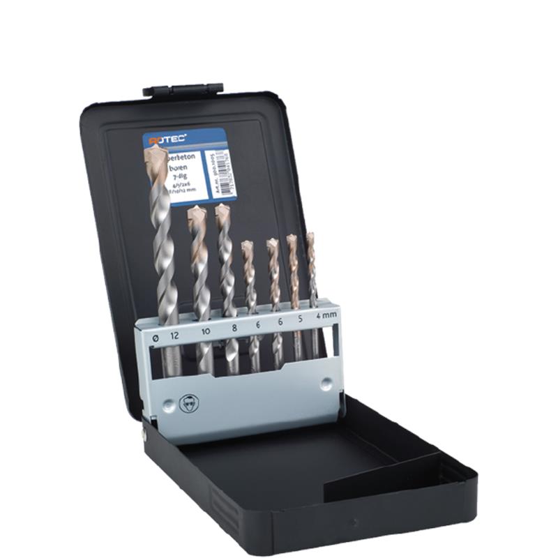 Boor is vervaardigd uit hooggelegeerd Chroom-Vanadium staal. Door de speciaal geslepen spiraal is een hoge boorsnelheid en gruistransport mogelijk. De soldering van het hardmetalen plaatje is bestand tegen temperaturen boven 1000°C. Hamervast. Alle boren boven ø13 zijn standaard afgedraaid naar schacht ø13.