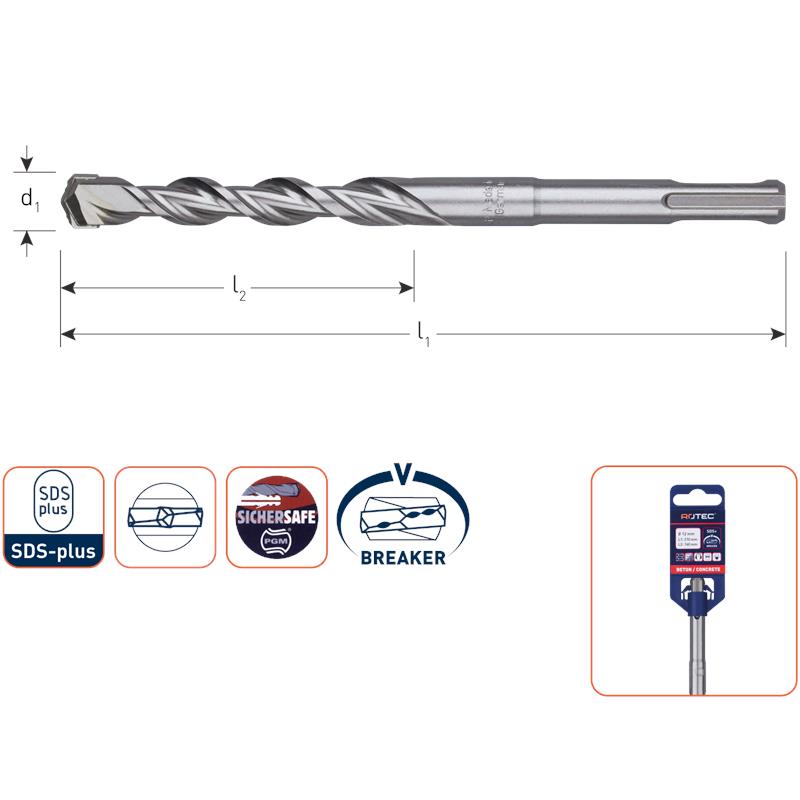 Hamerboor met SDS-plus aansluiting (ø10mm), speciale kernversterkte spiraal en een hardmetalen tip met uniek ontworpen geometrie.