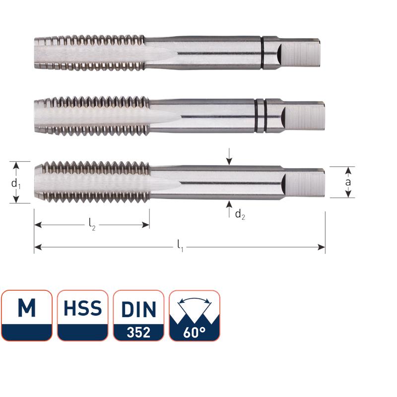 HSS handtap DIN 352, metrisch, set à 3 stuks.