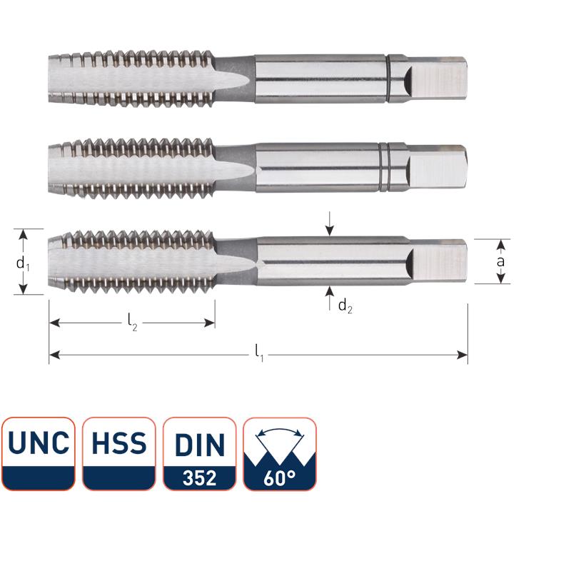 HSS handtap DIN 352, UNC, set à 3 stuks.