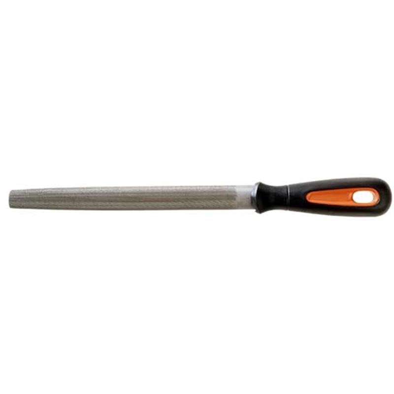 Chroom-Vanadiumstaal, naar de punt taps toelopend, hoge verspaningscapaciteit, dubbel gekapt. Voor het vijlen van holle en vlakke oppervlakken en grote gaten, geschikt voor ontbramen. greep van harde polypropyleenkern, bekleed met rubber, biedt een comfortabele antislip grip
