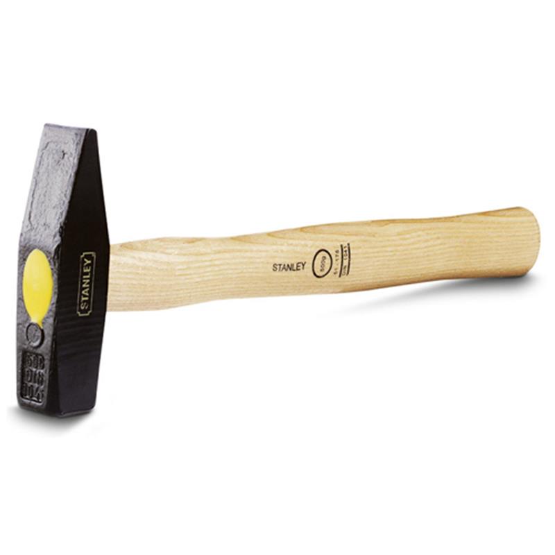 Steel van essenhout, kop van gehard en getemperd staal, platte kop met afgeschuinde hoeken, gewicht 100 gram