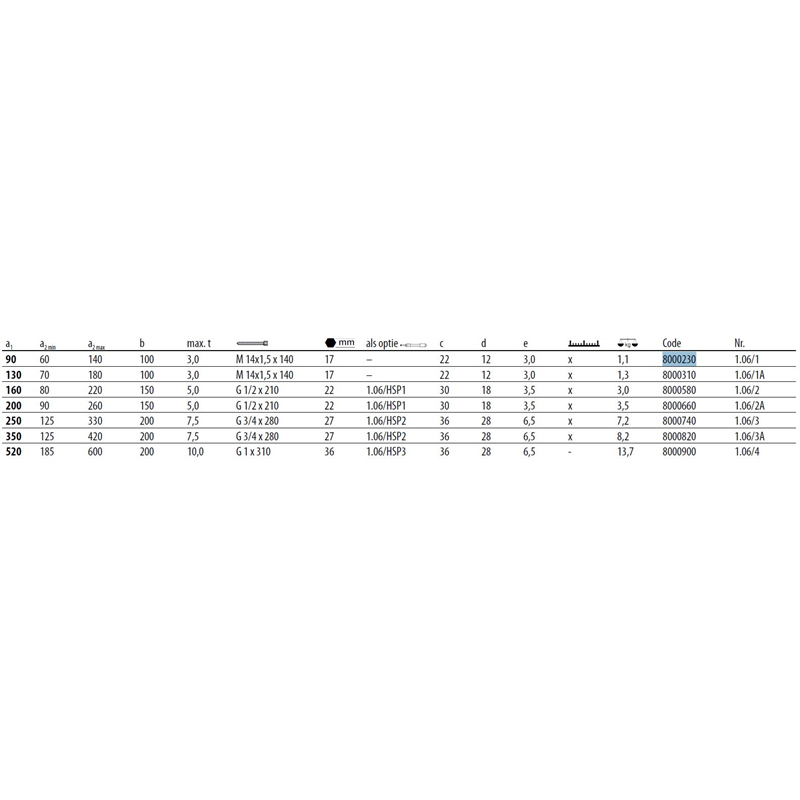 - Als toebehoren zijn verwisselbare haken voor meerdere spandiepten leverbaar