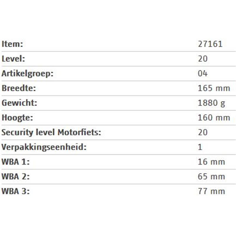 - De 16 mm dikke beugel is gemaakt van gehard speciaalstaal en biedt extreem hoge weerstand tegen agressieve kraakpogingen