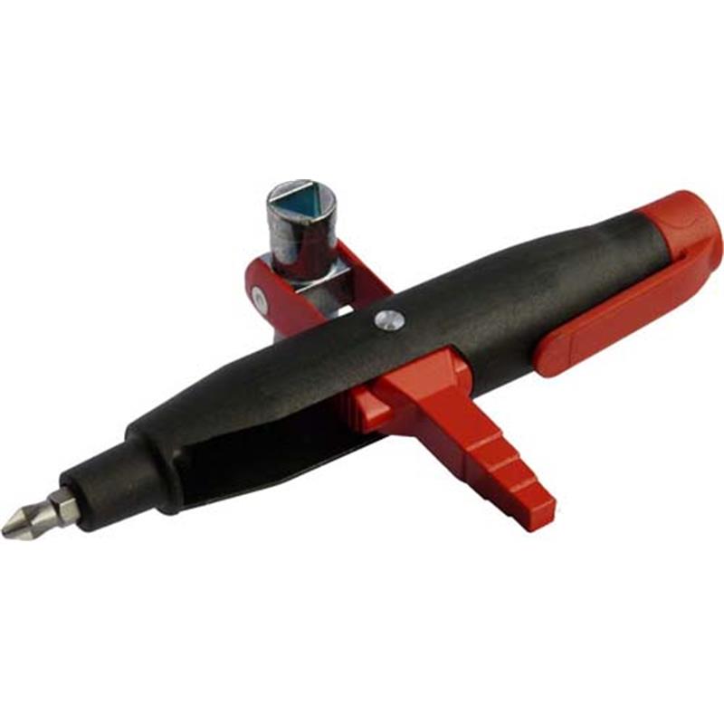 Duurzaam glasvezelversterkte kunststof behuizing, draaimechanisme om de sleutels in de juiste positie te krijgen. Magnetische bitaansluiting 1/4 inch. Clip met sleutel voor radiatorontluchtingskranen. Bediening van schakelkastsluitsystemen in de elektrotechniek, gas- en watervoorziening, luchtbehandelings- en ventilatietechniek en de industrie.