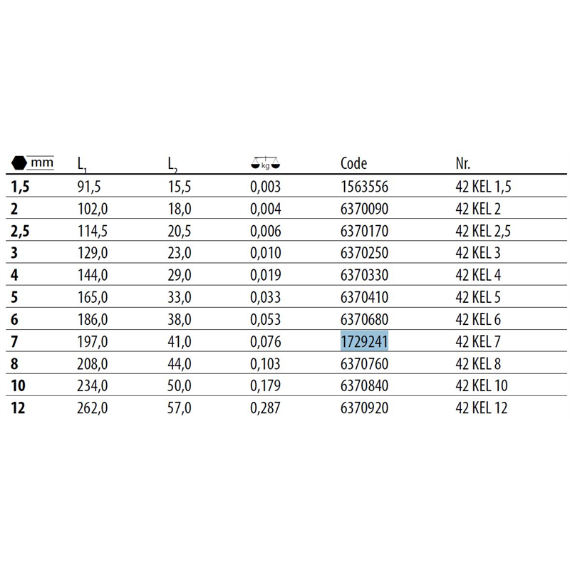 Stiftsleutel 42 KEL zeskant, extra lang met kogelkop 6mm