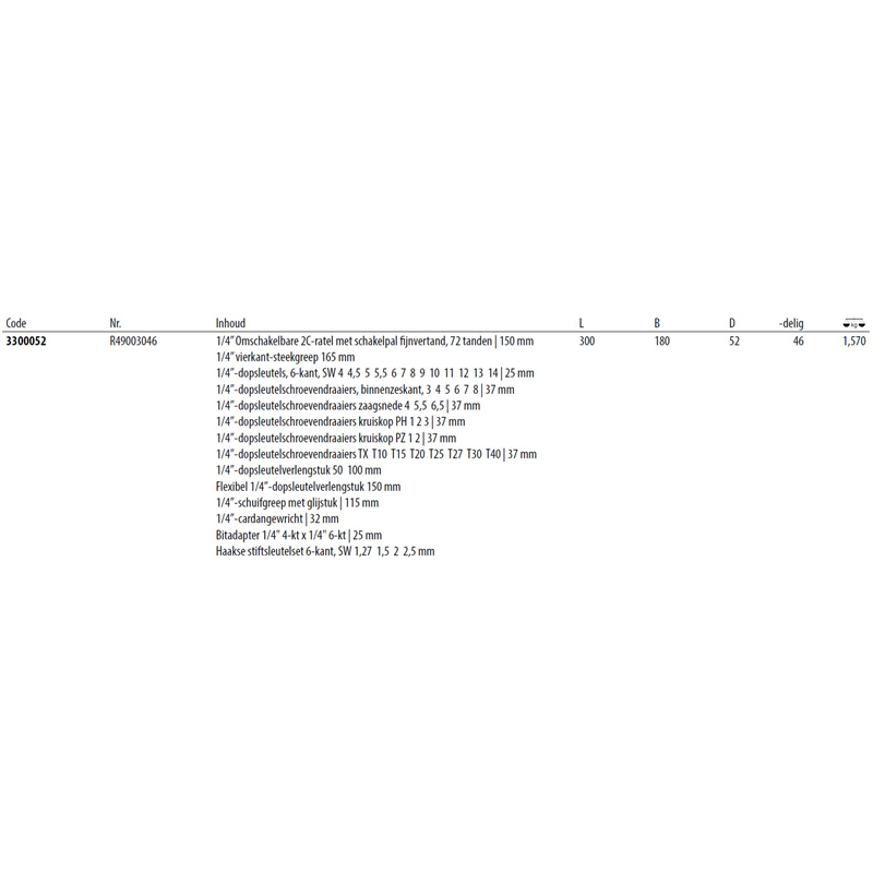 - Dopsleutelschroevendraaier 1/4", voor binnenzeskantbouten: met ingeperste, gefosfateerde stift