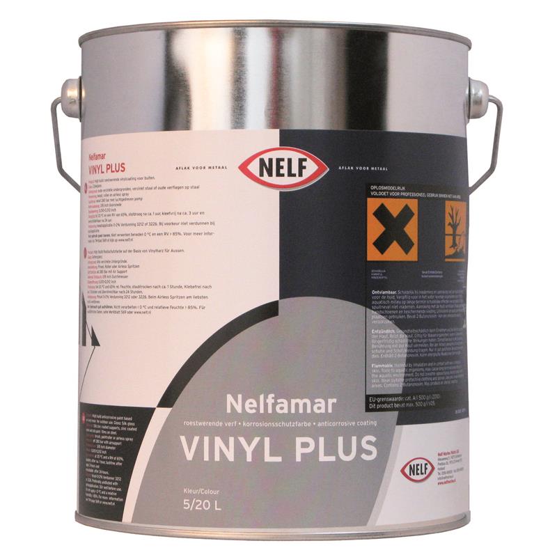 Nelfamar VinylPlusis een onderhoudsvriendelijke rever-sibele grond-, tussen-en eindlaag met roestwerende eigenschappen. Perfect toe te passen als roestwerende afwerking op staalconstructies,stalen(nood)trappen, leuningen,balustrade/galerij hekkenen de bovenbouw in de scheepvaart.Zeer geschiktals synthetische afwer-king van beton zoals consoles onder balkon en galerij.Op ondergronden welke reeds zijn voorzien van een chloorrubber-of vinylcoatingsysteem volstaat, door de reversibeleeigenschappen, in de meeste gevallen goed reinigen en ontvetten.