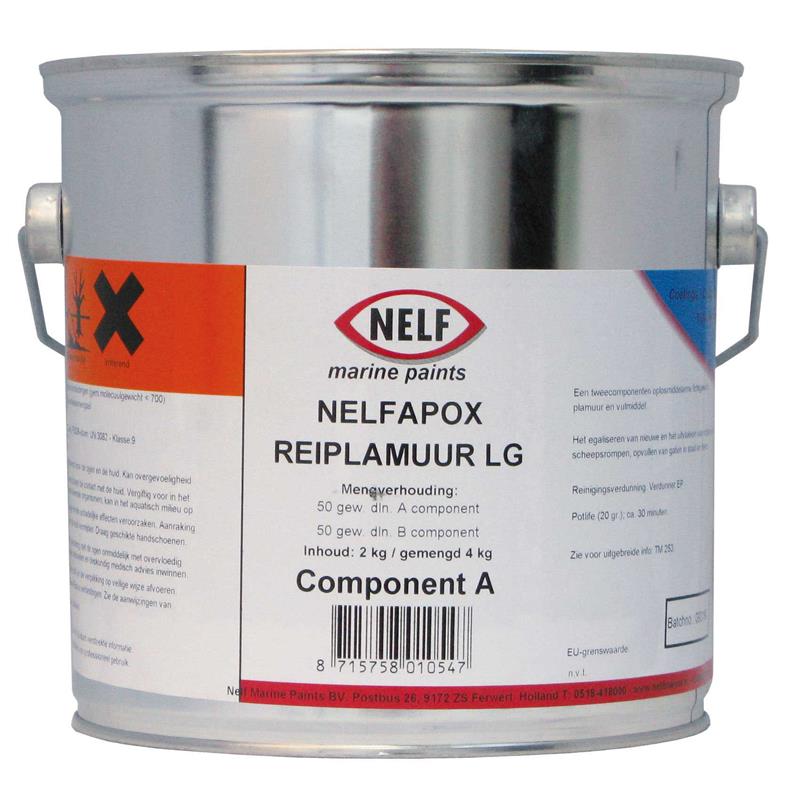 Nelfapox Reiplamuur LG is een oplosmiddelarme lichtgewicht 2-componenten epoxy plamuur/vulmiddel voor het egaliseren van nieuwe vlakken en het uitvlakken van schade e.d. aan scheepsrompen. Ook inzetbaar voor het opvullen van gaten in staal en beton.