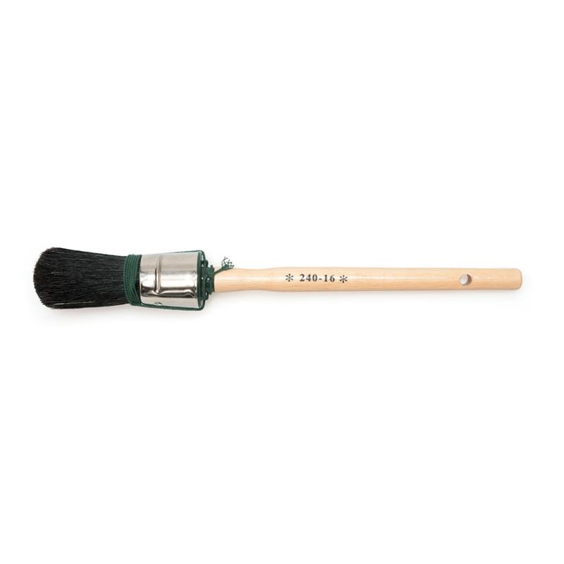 Patentpuntkwast, houten gelakte steel, vernikkelde bus, zwart Chinees varkenshaar Chungking 60/70% tops, opgebonden met touwwoeling.