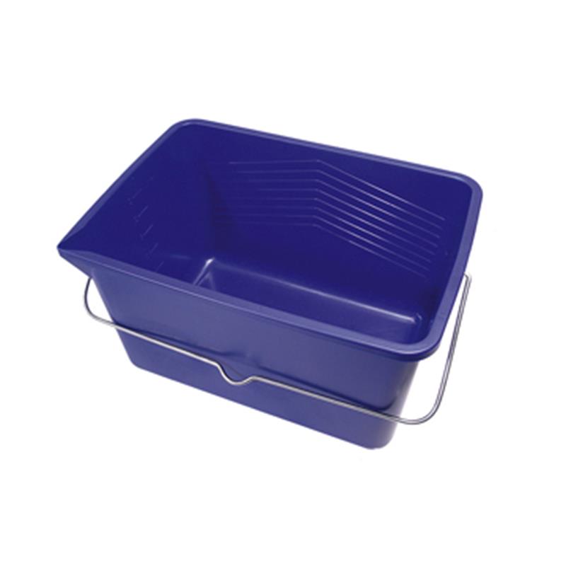 Rechthoekige, professionele verfemmers, stapelbaar. Vervaardigd uit slagvast en oplosmiddelbestendige kunststof. Emmers voorzien van maatverdeling en geribde wand (rooster).