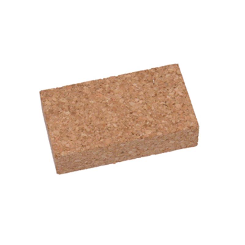 Geperste natuurkurk met aan handpalmzijde afgeronde hoeken. 105X60X25mm.