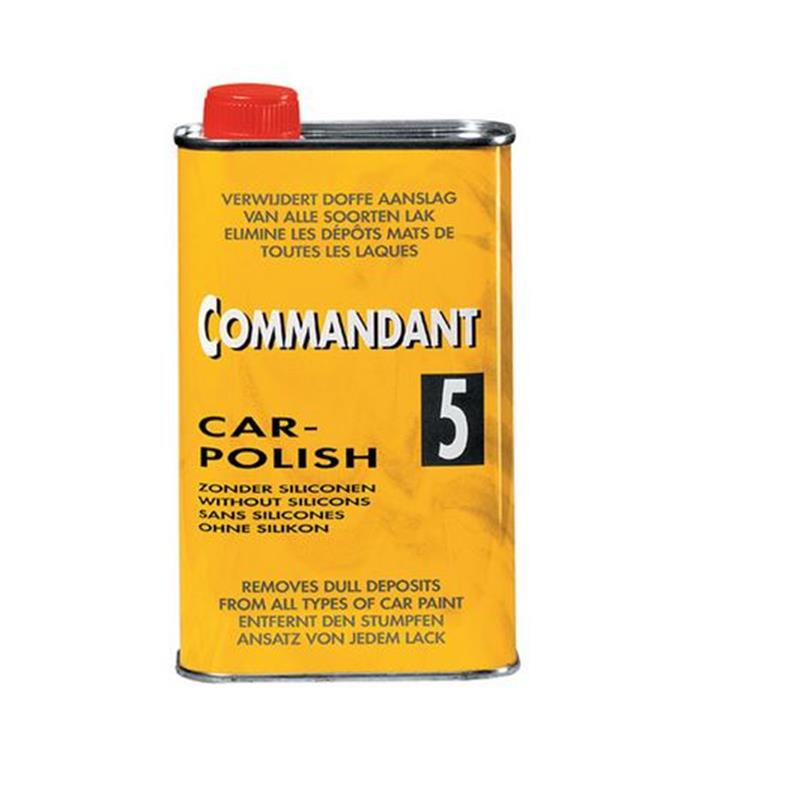 Commandant 5 is een milde polish die licht verweerde lakken weer laat glanzen. Ook kleine krasjes en poetskrasjes worden aangepakt. Commandant 5 maakt een ruwe lak weer glad en verwijdert aanslag. Door de watergebaseerde, siliconenvrije en oplosmiddelarme samenstelling is Commandant 5 uitermate geschikt voor gebruik na spuitwerkzaamheden.