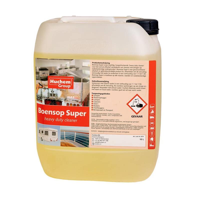 Huchem Boensop is een krachtig, hoogschuimende 'heavy duty cleaner' voor het snel en effectief verwijderen van (zware) vervuilingen op waterbestendige ondergronden. Huchem Boensop is een geconcentreerd alkalisch en gebruiksvriendelijk product en, afhankelijk van de vervuiling, eenvoudig met water te verdunnen in een verhouding van 1:1 tot 1:50. Huchem Boensop is inzetbaar op alle vloeren, wanden en waterbestendige oppervlakten van bijvoorbeeld schepen, pleziervaartuigen, campers, caravans, auto's, vrachtwagens, keukens, etc.
