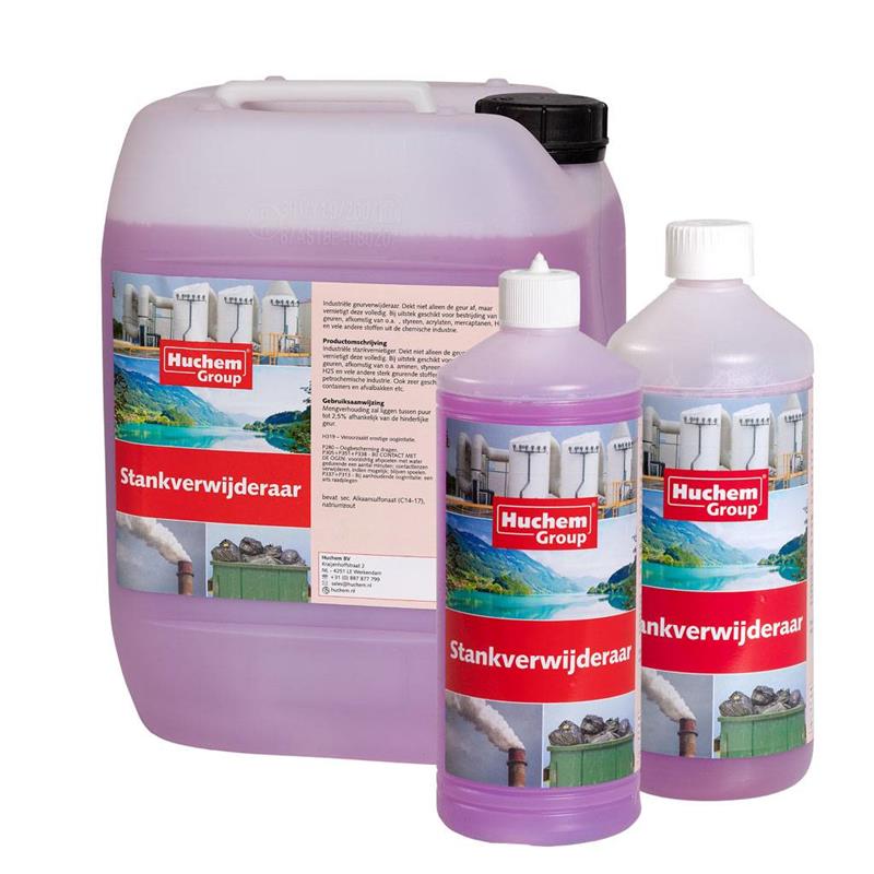 Stank problemen zijn vaak lastig op te lossen, omdat de meeste producten enkel de geur maskeren, in plaats van de stankbron te verwijderen. Hierdoor verdwijnt de geur slechts tijdelijk en komt deze vaak snel weer terug. De industriële stankverwijderaar van Huchem dekt de geur echter niet alleen af, maar vernietigt de stankbron volledig. Dit maakt het product bij uitstek geschikt voor de bestrijding van geuren afkomstig van o.a. aminen, styreen, acrylaten, mercaptanen, H2S en vele andere, sterk geurende stoffen uit de chemische en petrochemische industrie. Ook is het product zeer geschikt voor het ontgeuren van bijvoorbeeld containers en afvalbakken. Huchem Stankverwijderaar is schadelijk voor in het water levende organismen en kan daarbij langdurige gevolgen veroorzaken. Houd dit bij het gebruik van het product in acht en voer deze af in overeenstemming met regionale en (inter-)nationale regelgeving. Daarnaast geeft het product ernstige oogirritatie, dus contact met de ogen moet ten alle tijden worden vermeden!