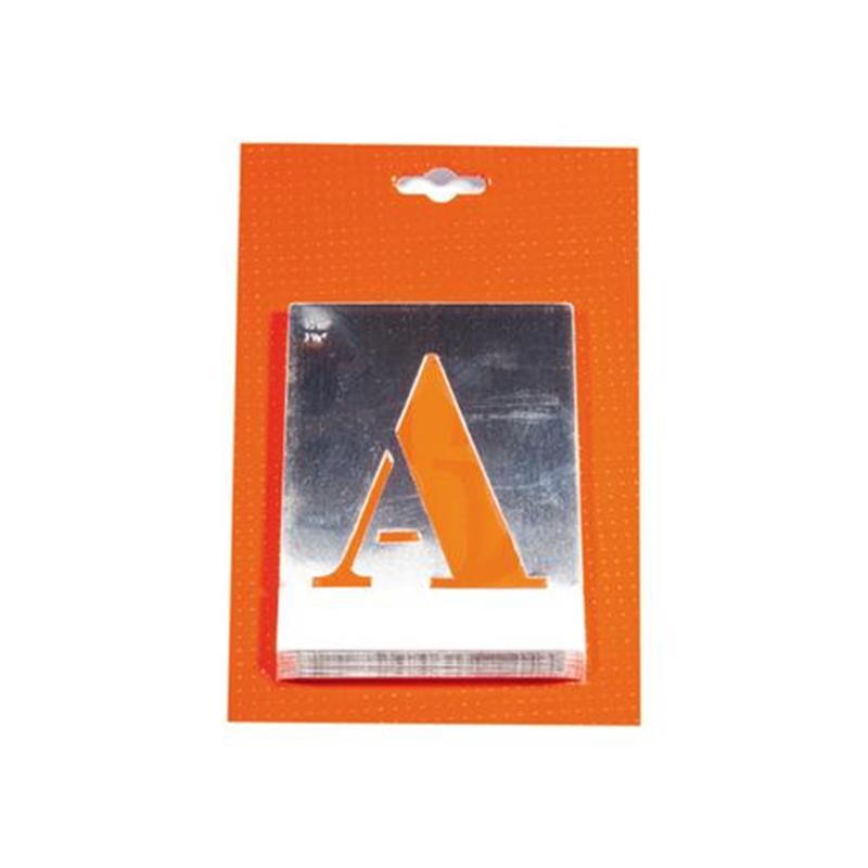 Uitgevoerd in kapitaalletters (hoofdletters - blokletters). Vervaardigd van metaal.