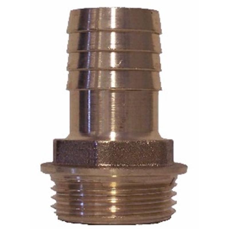 Messing slangpilaar met buitendraad, voorzien van zeskant en stootrand.