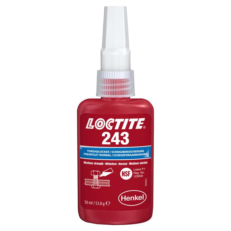 LOCTITE® 243 is een schroefdraadborgmiddel met gemiddelde sterkte voor algemeen gebruik. Dit schroefdraadborgmiddel zet bouten, moeren en tapeinden vast en dicht ze af om het loskomen door trilling te voorkomen. Het product is geschikt voor alle metalen, inclusief passieve materialen zoals roestvrij staal, aluminium en oppervlaktebehandelde materialen. Het heeft een bewezen tolerantie voor lichte vervuiling door industriële oliën, zoals motorolie, corrosiewerende olie en snijolie.