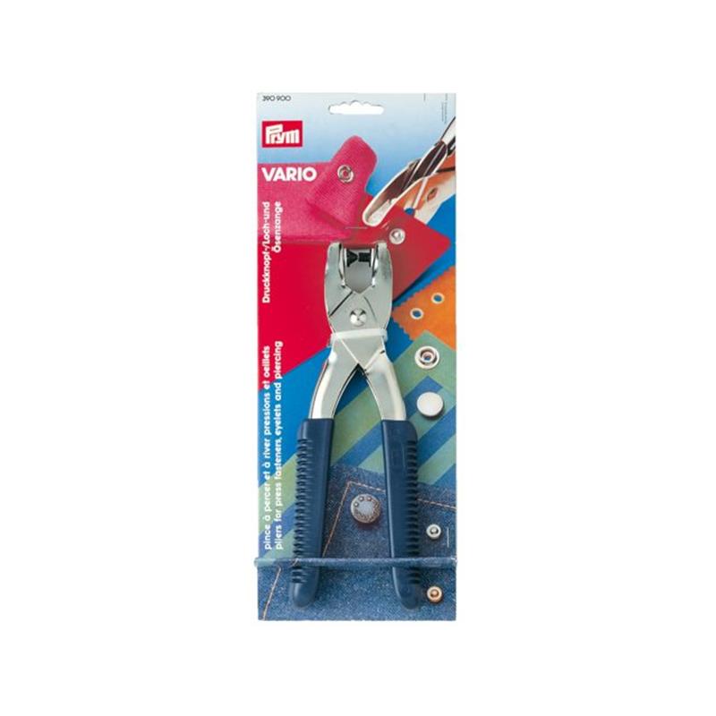 Solide tang voor verwerken van zeilkousen en drukknoppen. Individuele gereedschappen voor de tang zijn in de produktverpakking bijgesloten.