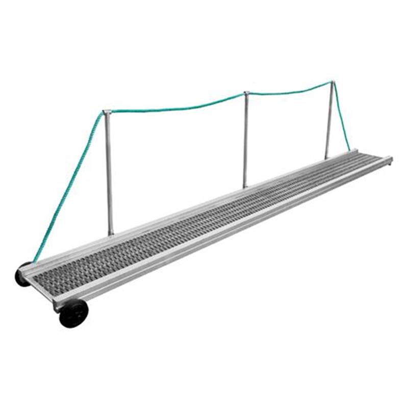 Drijvende lichtgewicht loopplank van aluminium met looppad van speciaal opengewerkt ANTISLIP profielrooster.