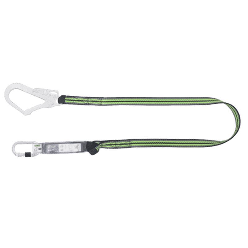 De Kratos vanglijn FA3030418 met valdemper heeft een lengte van 1,8 meter uitgevoerd in band lijn van 30 mm webbing en is voorzien van een stalen karabijnhaak en een stalen steigerhaak.