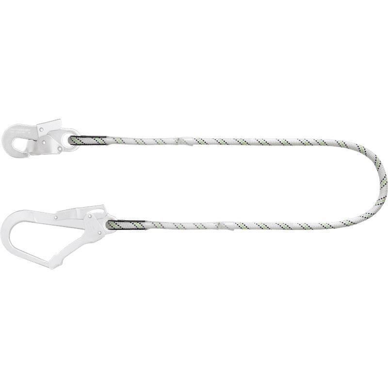 De Kratos positioneringslijn FA4050315 heeft aan de ene zijde een steigerhaak vervaardigd uit staal en de andere zijde is voorzien van een stalen automatische haak. De lussen zijn beschermd tegen schuren door middel van een kunststof bescherm ring.