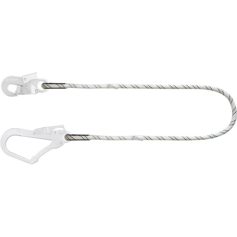 De Kratos positioneringslijn FA4050320 heeft aan de ene zijde een steigerhaak vervaardigd uit staal en de andere zijde is voorzien van een stalen automatische haak. De lussen zijn beschermd tegen schuren door middel van een kunststof bescherm ring.