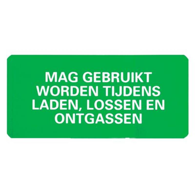 Sticker Mag wel gebruikt worden tijdens laden, lossen en ontgassen