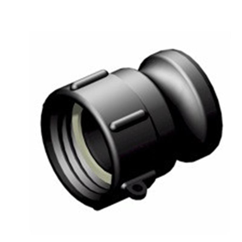 IBC binnendraad koppeling met adapter systeem kamlok V-deel volgens MIL H 27487. Voorzien van dichtring. Uitgevoerd volgens EN1092-1 type 01, werkdruk 16 bar. Materiaal S235JRG2. Vlakke uitvoering.