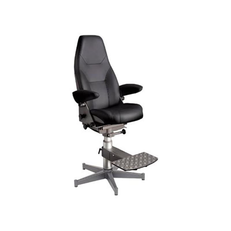 Professionele stoel speciaal voor de zeevaart met een extra zwaar onderstel met veel instelmogelijkheden, standaard voorzien van stoelslede en grote opklapbare voetensteun.