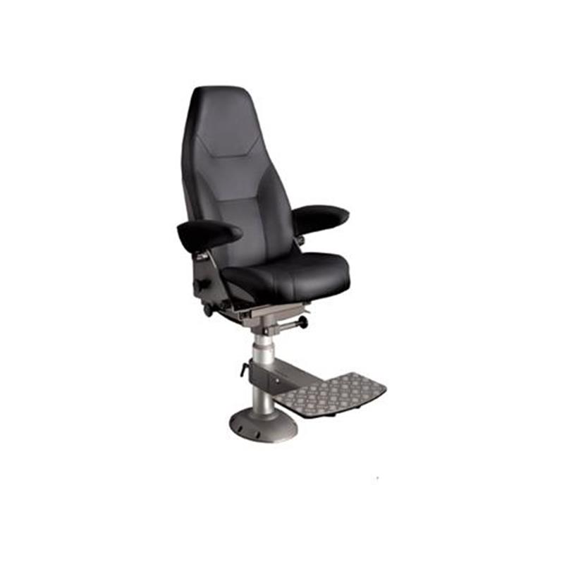 Professionele stoel speciaal voor de zeevaart met een extra zwaar onderstel met veel instelmogelijkheden, standaard voorzien van stoelslede en grote opklapbare voetensteun.